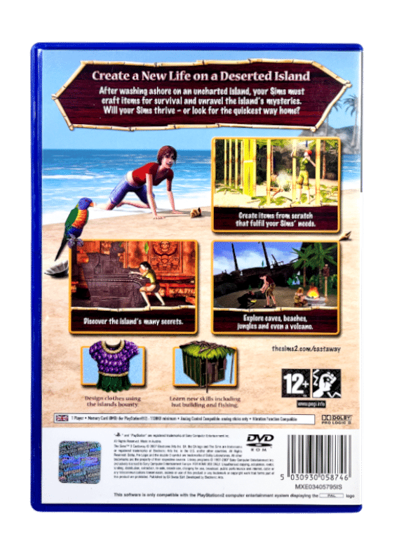 The Original Blue Case Edition in Excellent Condition & 100% Complete with Contents: The SIMS 2 CASTAWAY for SONY PlayStation 2 / PS2. This preowned game is in superb condition, and comes complete with case, cover, manual / booklet, and game disc.