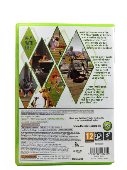 Rare XBox 360 Game: The SIMS 3 PETS for Xbox 360. This preowned game is in good playing condition and includes case, cover, and game disc. Some light superficial markings / cosmetic scratches, but these are very minor imperfections which do not affect game play in any way. Please note that the manual is not included in this listing, but the game is self-explanatory, and the instructions are readily available online.
