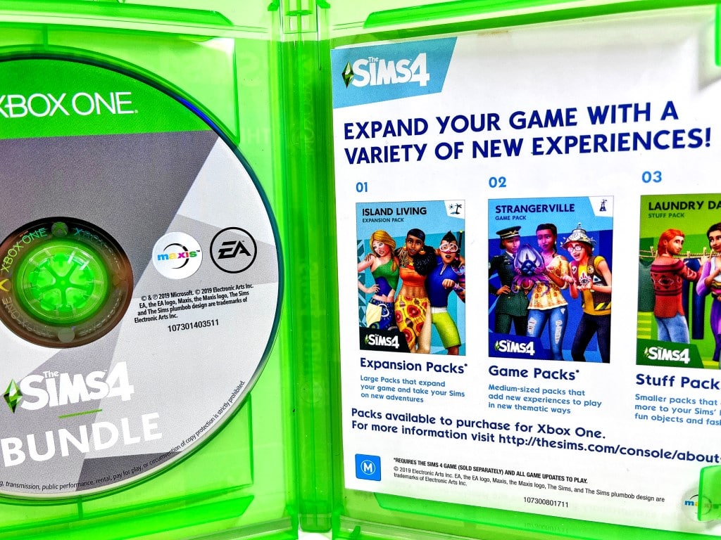 Rare SIMS GAME BUNDLE in excellent condition & 100% complete with contents: TWO GAME BOX SET – The Sims 4 + The Sims Cats & Dogs Expansion Pack for XBox One. This preowned two game bundle is in excellent condition, complete with official Sims 4 Bundle Carded Insert, booklet, Case, Cover, and Game Disc.
