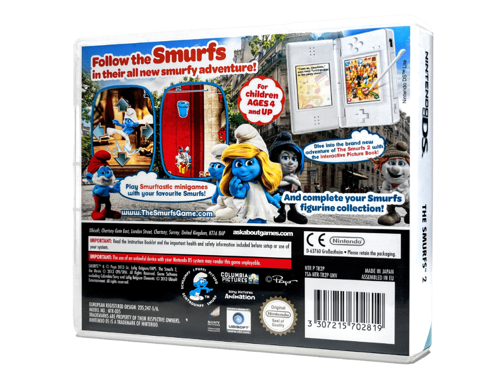 Excellent condition & 100% complete with contents: The SMURFS 2 – the official video game for NINTENDO DS. This preowned game is in superb condition and comes complete with case, cover, Nintendo booklet, Movie Advertising brochure, game manual / booklet, and game cartridge.