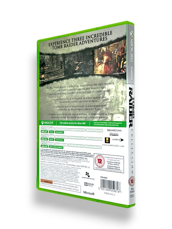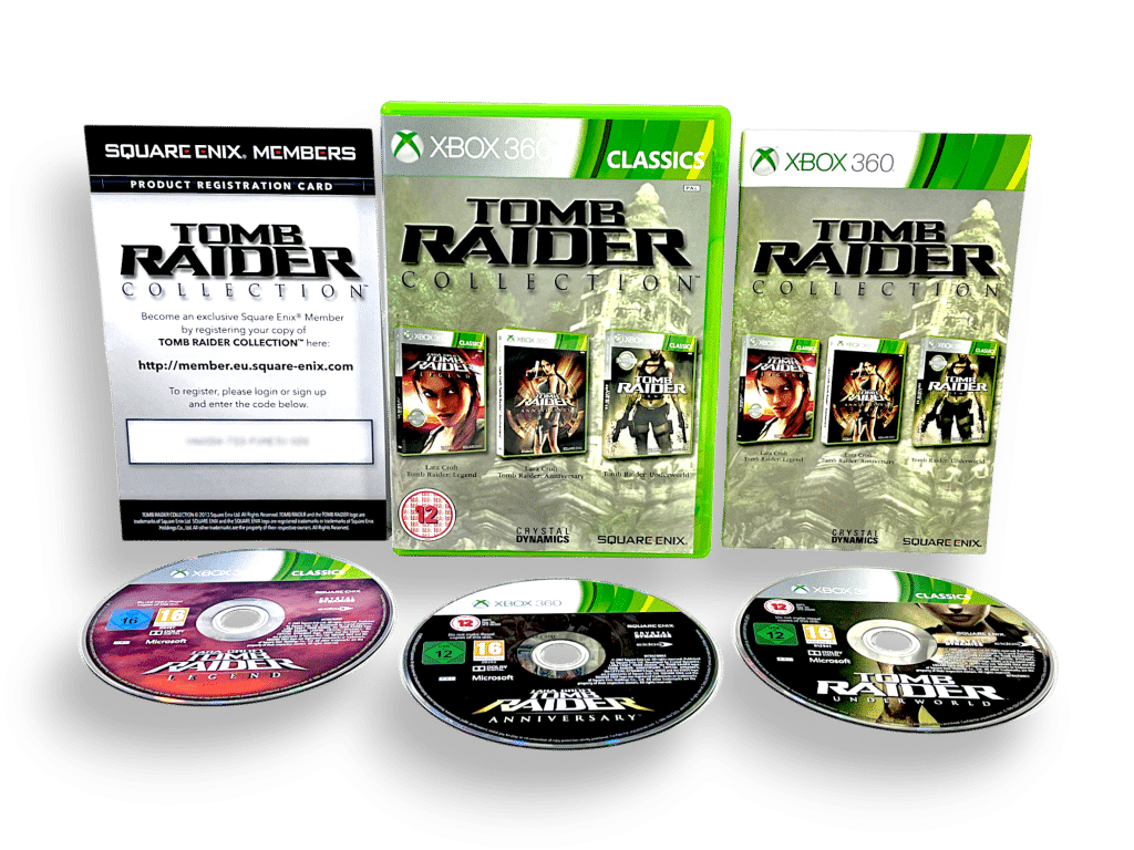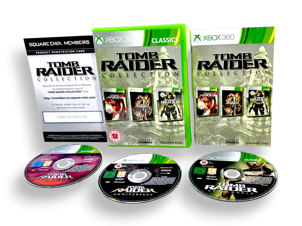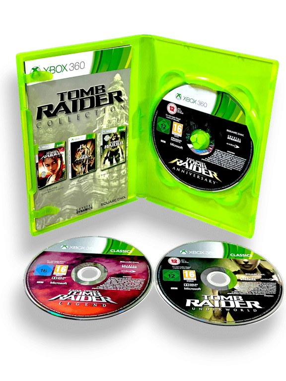 RARE 3 GAME BUNDLE in Mint Condition & 100% Complete with Contents: TOMB RAIDER COLLECTION (featuring Tomb Raider: Legend, Tomb Raider: Anniversary, and Tomb Raider: Underworld) for Xbox 360). This preowned game is in PRISTINE condition – a very tidy and complete collector’s item – with case, cover, manual / booklet, promo card, and ALL THREE GAME DISCS. Add this to your collection today and display it proudly!
