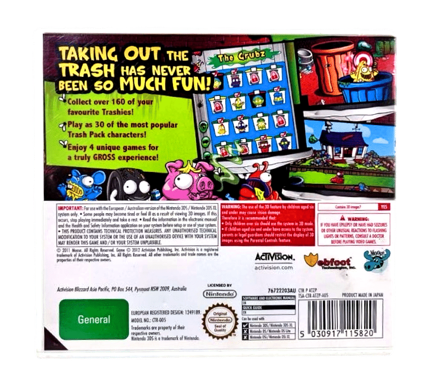 Excellent Condition & 100% Complete with Contents: THE TRASH PACK: THE GROSS GANG IN YOUR GARBAGE for NINTENDO 3DS. This preowned game is in superb condition and comes complete with Case, Cover, Manual (Instruction Leaflet), and Game Cartridge.