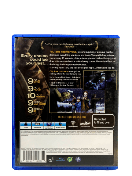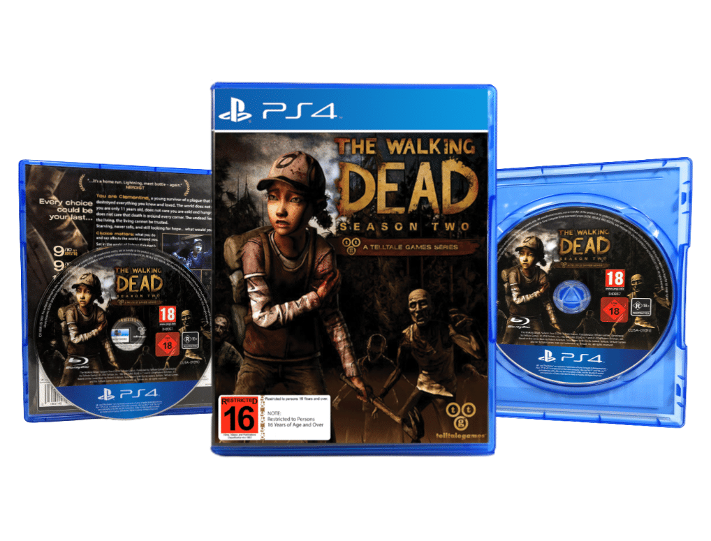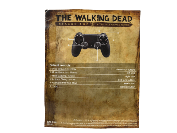 Good condition & 100% complete with contents: THE WALKING DEAD A TELLTALE GAMES SERIES SEASON TWO (SEASON 2) for SONY PlayStation 4 / PS4. This preowned game comes complete with case + cover + carded insert + game disc. The top edge of the paper cover has a thin line of paper fraying, but this is purely cosmetic, and the game disc inside is excellent.