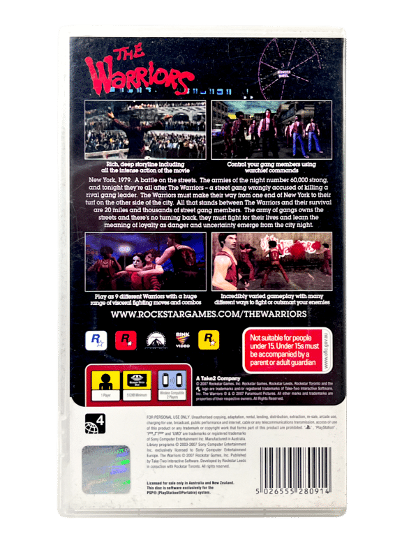 Rare PSP Game in good condition & 100% complete with contents: THE WARRIORS The Game for SONY PSP / PlayStation Portable. This preowned game is in tidy condition and comes complete with case, cover, manual / booklet, and game disc inside its miniature UMD case.