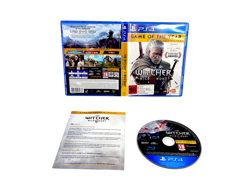 The Witcher 3: Wild Hunt – Game of the Year Edition (PS4). This pre-owned game is in excellent condition and includes the pictured contents. Refer photographs.