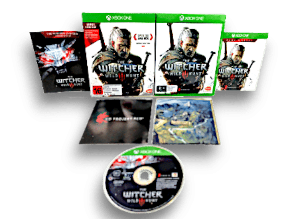 The Witcher 3 Wild Hunt for Xbox One. This preowned game is in excellent condition and includes each of the case + cover + manual / booklet + game disc. Please note that the POSTER & promo cards are NOT INCLUDED in this listing, but the game is self-explanatory, and the Map is readily available online.