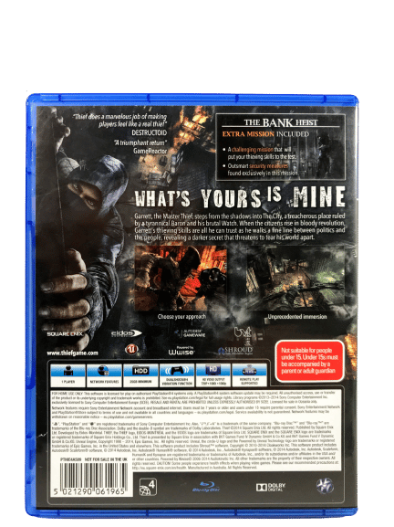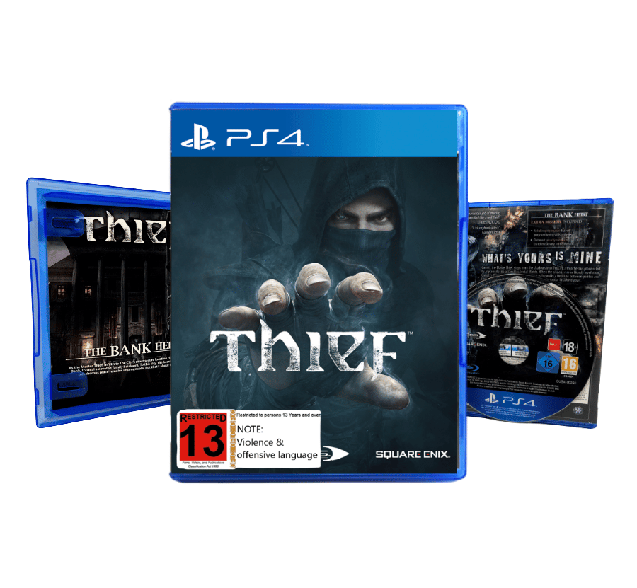 Excellent Condition & 100% Complete with Contents: THIEF The Video Game for SONY PlayStation 4 / PS4. This preowned game comes complete with case, cover, 3 x carded inserts (any voucher codes assumed no longer valid), and game disc.
