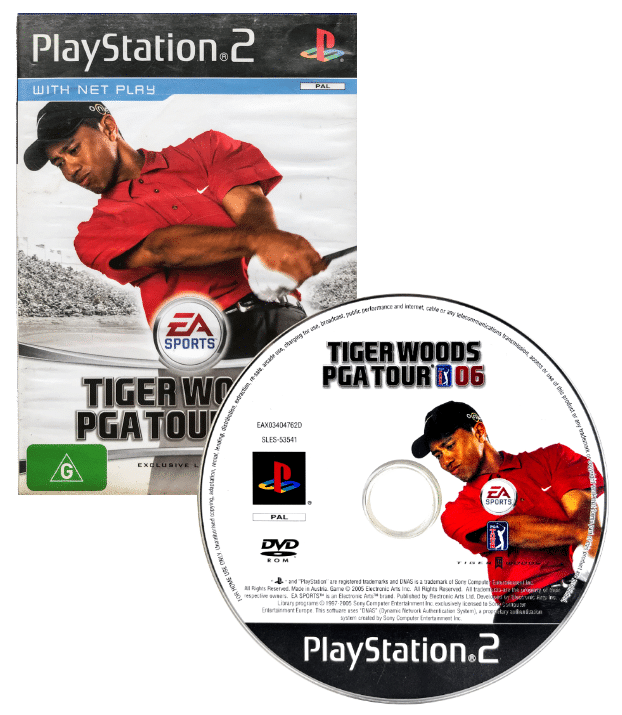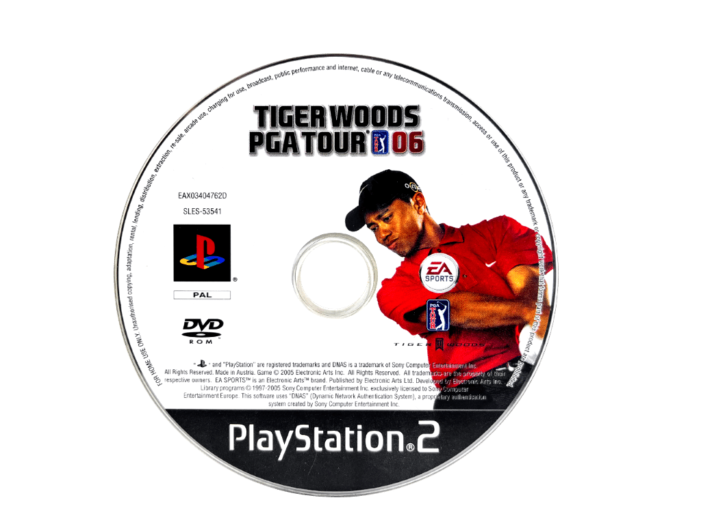 EA Sports presents TIGER WOODS PGA TOUR ’06 for SONY PlayStation 2 / PS2. This preowned game disc is in good playing condition with light superficial markings / cosmetic scratches which do not affect game play in any way. Disc comes inside case with paper cover. Cover has some old United Video stickers.