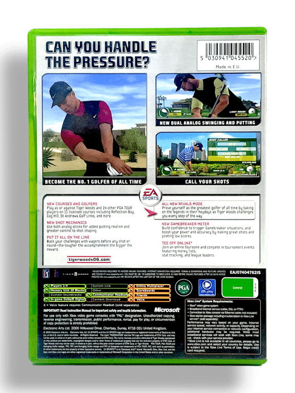 Tiger Woods PGA Tour 06 (Xbox). This preowned Original Xbox game is in good condition with very mild disc surface imperfections only, and includes pictured case + cover.