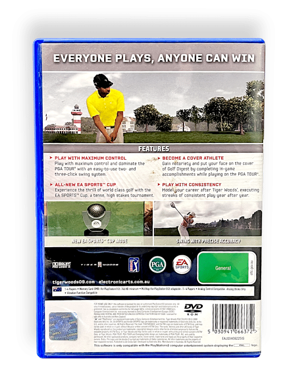 Tiger Woods PGA Tour 09 (PS2) *EXCELLENT & COMPLETE*. This pre-owned Sony PlayStation 2 game is in excellent condition and complete with the original case, cover, instruction manual booklet, and game disc.