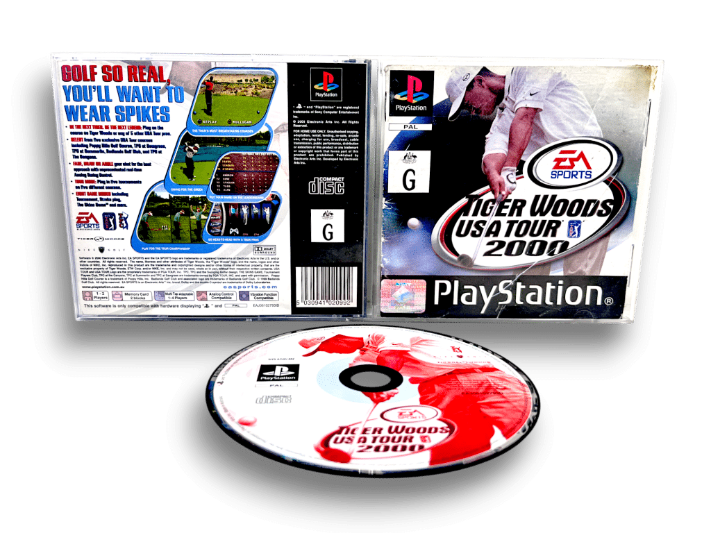 Follow Appleby Games on Facebook & Instagram for Free $20 Vouchers for every $200 spent with our Loyalty Programme, product updates, competitions, and find our store opening hours on Google. **** Tiger Woods PGA Tour 2000 for PlayStation brings early 3D golf simulation to fans of the sport. Featuring Tiger Woods as the cover athlete, the game offers various real-world courses, customizable golfers, and tournament play. Its mechanics allow for both casual pick-up play and deeper career progression. The game highlights Tiger’s dominance at the time, as he rose to international fame. For collectors, it represents one of the earliest entries under the Tiger Woods branding. It remains a nostalgic sports title for PS1 players. *** SIMILAR PRODUCTS PURCHASED BY COLLECTORS – EACH SOLD SEPARATELY: Tiger Woods PGA Tour 2001 (PS1), Links LS 2000, PGA Tour Golf Collection