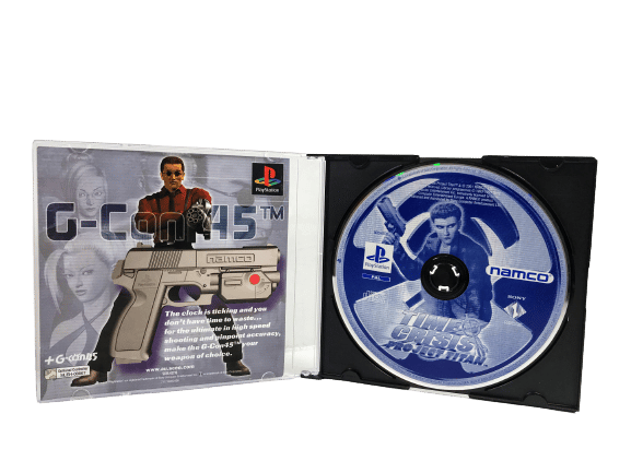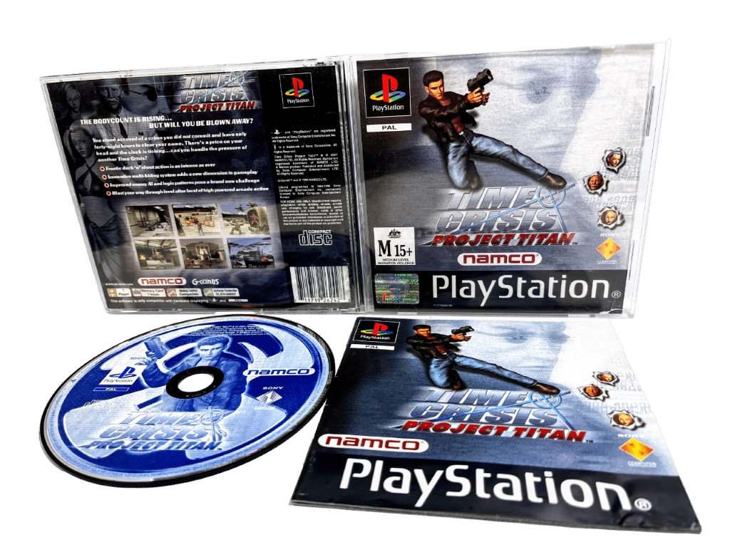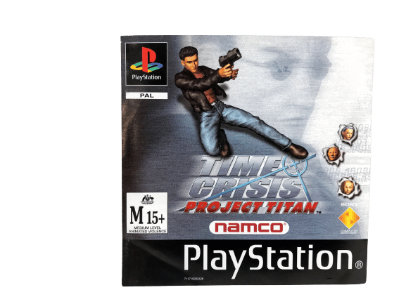 Excellent condition & 100% complete with contents: Time Crisis Project Titan for SONY PlayStation / PS1. This preowned game is in very tidy condition and comes complete with covers (both front + reverse cover slips) + manual / booklet + game disc. Faint superficial markings / cosmetic scratches, but these are extremely minor imperfections which do not affect game play in any way. The game disc is in good condition, and all other contents are superb.