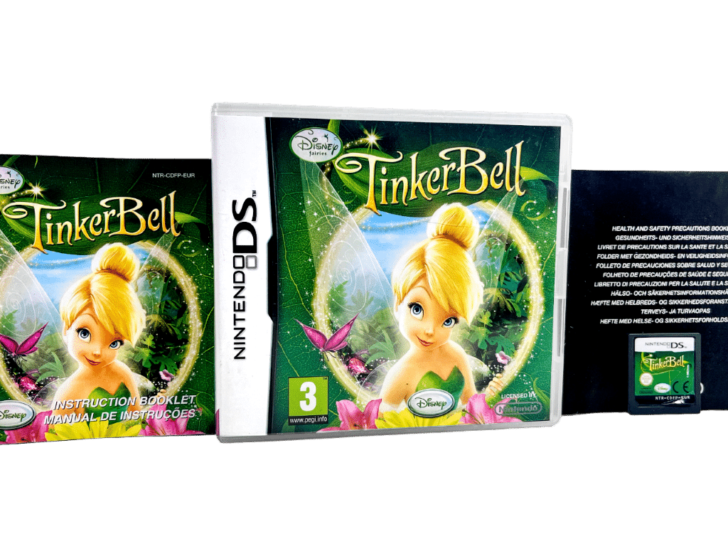 Excellent condition & 100% complete with contents: TINKER BELL / TINKER-BELL / TINKERBELL for NINTENDO DS. This preowned game is in superb condition and comes complete with case, double-sided art cover, manual / booklet, Nintendo booklet, and game cartridge. A tidy and complete collector’s item, and one of the rarer children’s games available for Nintendo DS.