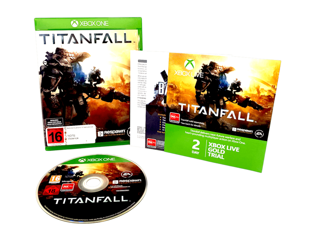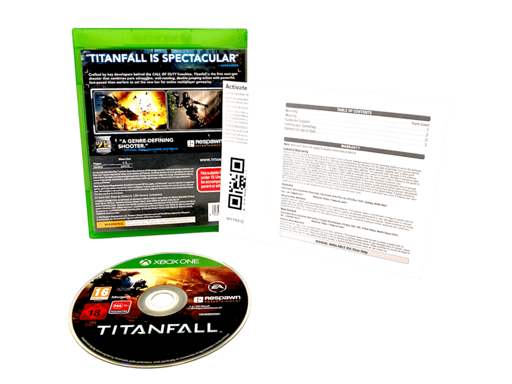 TITANFALL The Video Game for XBox One. This preowned game is in excellent condition and includes case + cover + promo cards + game disc. The case is a minor plastic crack, but this is purely cosmetic, and the internal contents are superb.