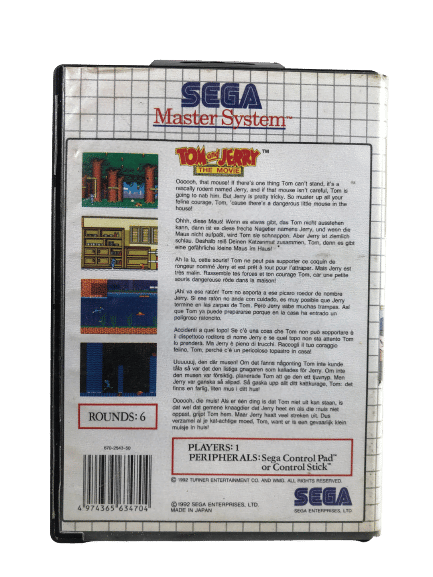 TOM & JERRY The Movie Game SEGA Master System).. This preowned game is in good condition, with original case, cover, and game cartridge.