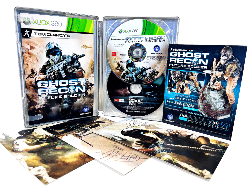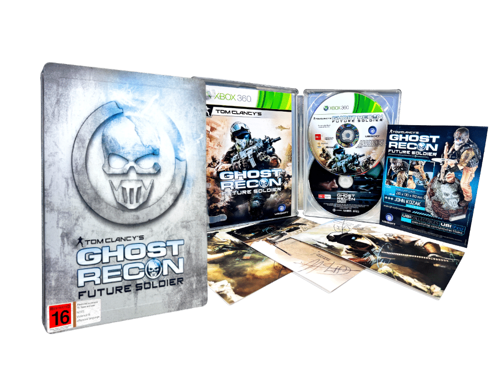 Genuine Limited Steel Case Collector’s Edition (with Collector’s Postcards) in Excellent Condition & 100% Complete with Contents: Tom Clancy’s Ghost Recon Future Soldier STEEL COLLECTOR’S EDITION for XBox 360. This preowned authentic limited Steelbook Release is in superb condition as pictured and includes game manual + insert card + 3 x COLLECTOR’S POSTCARDS. Add this to your collection today and display it proudly!