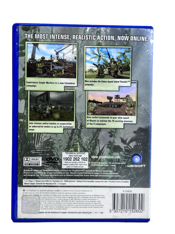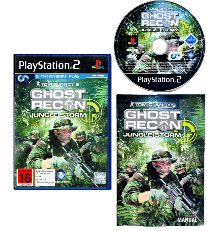 100% complete with contents: Tom Clancy’s Ghost Recon Jungle Storm for SONY PlayStation 2 / PS2. This preowned game comes complete with case + cover + manual / booklet + game disc. Yellow price sticker fixed to front page of manual, and the disc has some light superficial markings / cosmetic scratches, but these are very minor imperfections which do not affect game play in any way.
