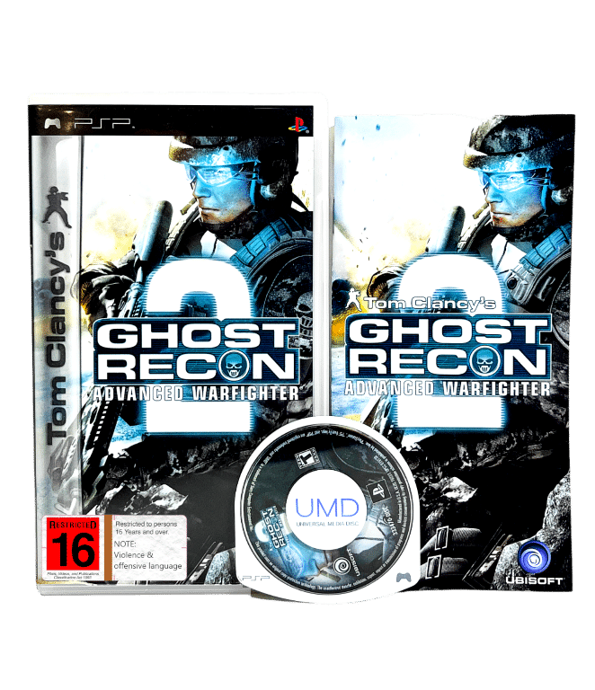 RARE ALTERNATE PRINT in excellent condition & 100% complete with contents: Tom Clancy’s Ghost Recon Warfighter 2 (PSP) for SONY PSP / PlayStation Portable. This preowned game comes complete with case, cover, manual / booklet, and game disc inside its miniature UMD case. A tidy and complete collector’s item.