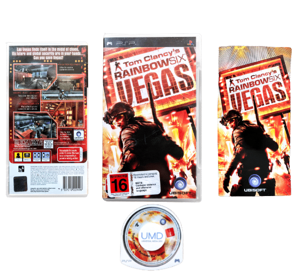 Excellent condition & 100% complete with contents: Tom Clancy’s Rainbow Six: Vegas (PSP) for SONY PSP / PlayStation Portable. This preowned game comes complete with case, cover, manual / booklet, and game disc inside a clear UMD case.