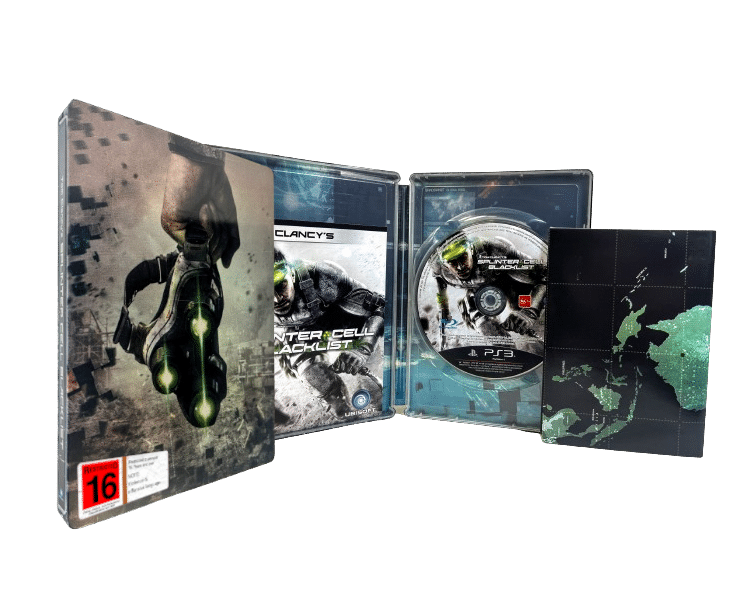 RARE LIMITED STEEL COLLECTOR’S EDITION in Excellent Condition & 100% complete with ALL contents (including BOTH manual / booklet AND LARGE COLLECTOR’S POSTER: Tom Clancy’s Splinter Cell: Blacklist LIMITED STEEL EDITION for XBox 360. This preowned authentic Steelbook Limited Edition is in pristine condition as pictured – a very tidy collector’s item.