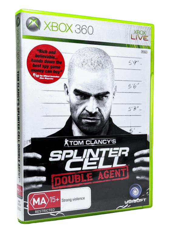 Good condition & 100% complete with contents: TOM CLANCY’S SPLINTER CELL DOUBLE AGENT for XBox 360. This preowned game comes complete with case + cover + manual / booklet + game disc. Case is a darker green than usual so differs ever so slightly from pictured light green case. Some very fine superficial markings / cosmetic scratches, but these are extremely minor imperfections which do not affect game play in any way.