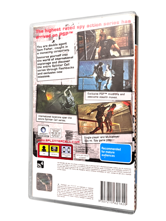 Tom Clancy’s Splinter Cell Essentials for SONY PSP (PlayStation Portable). This preowned game is in good condition and comes complete with case + cover + manual / booklet + game disc inside its miniature UMD case.
