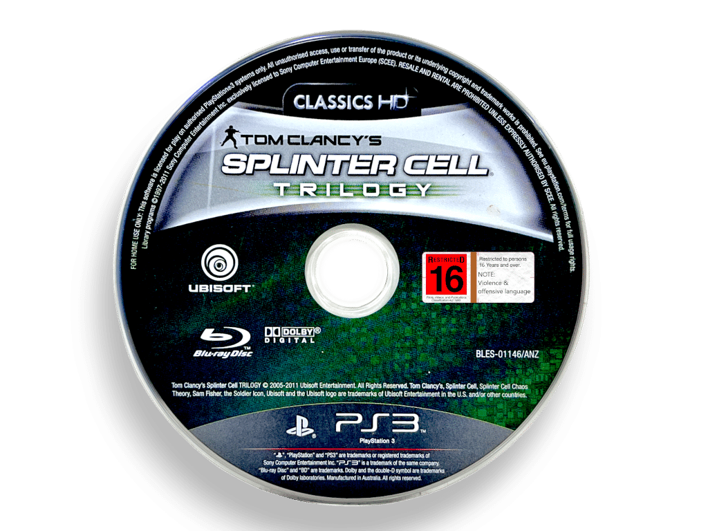 Tom Clancy’s Splinter Cell Trilogy (PS3 – Classics HD). This preowned game disc is in very good condition with only mild disc surface imperfections. This game disc comes inside an empty blank case. Please note that the original case is not included.
