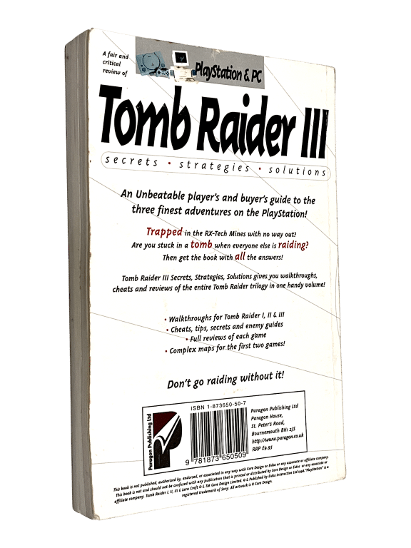 Unofficial strategy guide covering Tomb Raider III with walkthroughs, secrets, and puzzle solutions. A niche collector item for fans of Lara Croft and classic PlayStation adventure games. Complements retro Tomb Raider stock well and appeals to collectors of vintage gaming literature.