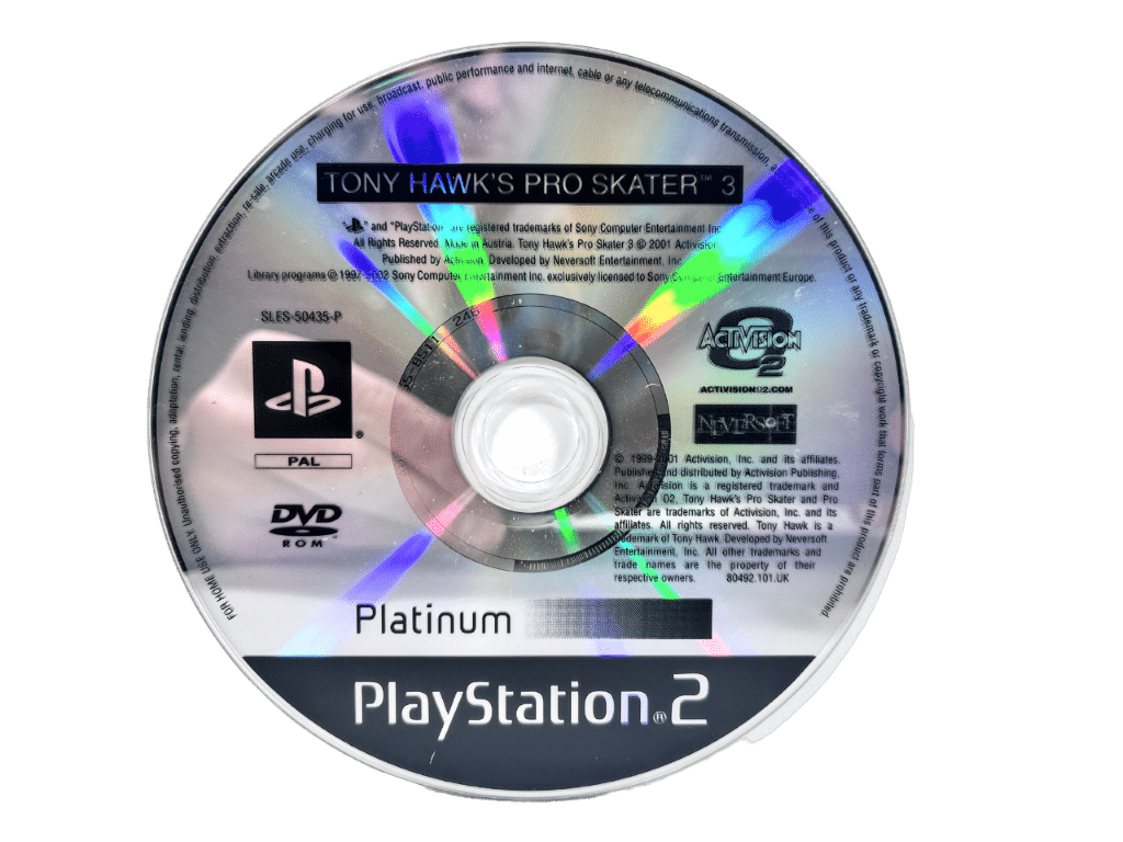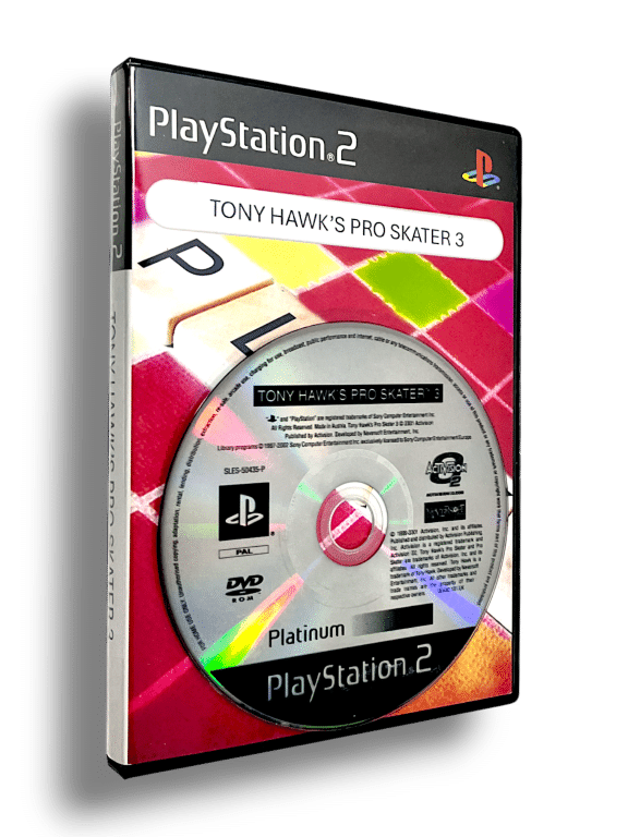 TONY HAWK’S PRO SKATER 3 SONY PlayStation 2 / PS2. This preowned game disc is in excellent condition with only faint disc surface imperfections. This game comes inside EB Games case (not original case).