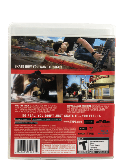 Alternate Print in Good Condition & 100% Complete with Contents: TONY HAWK’S PROJECT 8 / Tony Hawk Project 8 for SONY PlayStation 3 / PS3. This preowned game comes complete with case, cover, manual / booklet, and game disc. Booklet has small paper crease and a tiny yellow patch where an old price sticker has been removed from the front cover, but this is purely cosmetic, and the game disc is in mint condition.