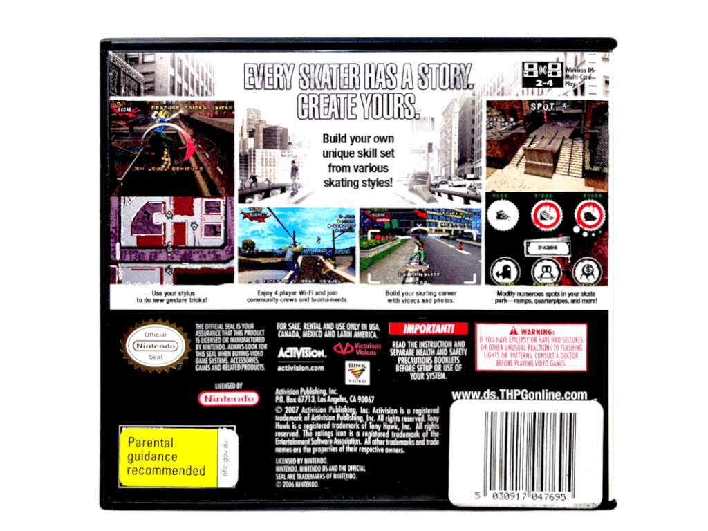 Excellent condition & 100% complete with contents: TONY HAWK’S PROVING GROUND for Nintendo DS. This preowned game is in superb condition and comes complete with case + cover + manual / booklet + game cartridge.