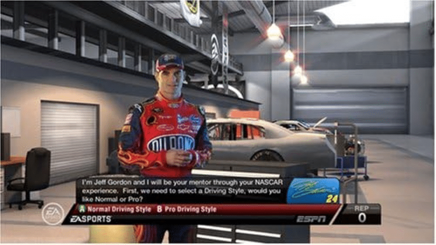 Learn From a Champion – Four-time NASCAR Sprint Cup Series Champion Jeff Gordon guides you through the game’s major features and advises you throughout your career. Use his advice as guidance in preparing to challenge the best drivers of NASCAR, including Gordon himself.