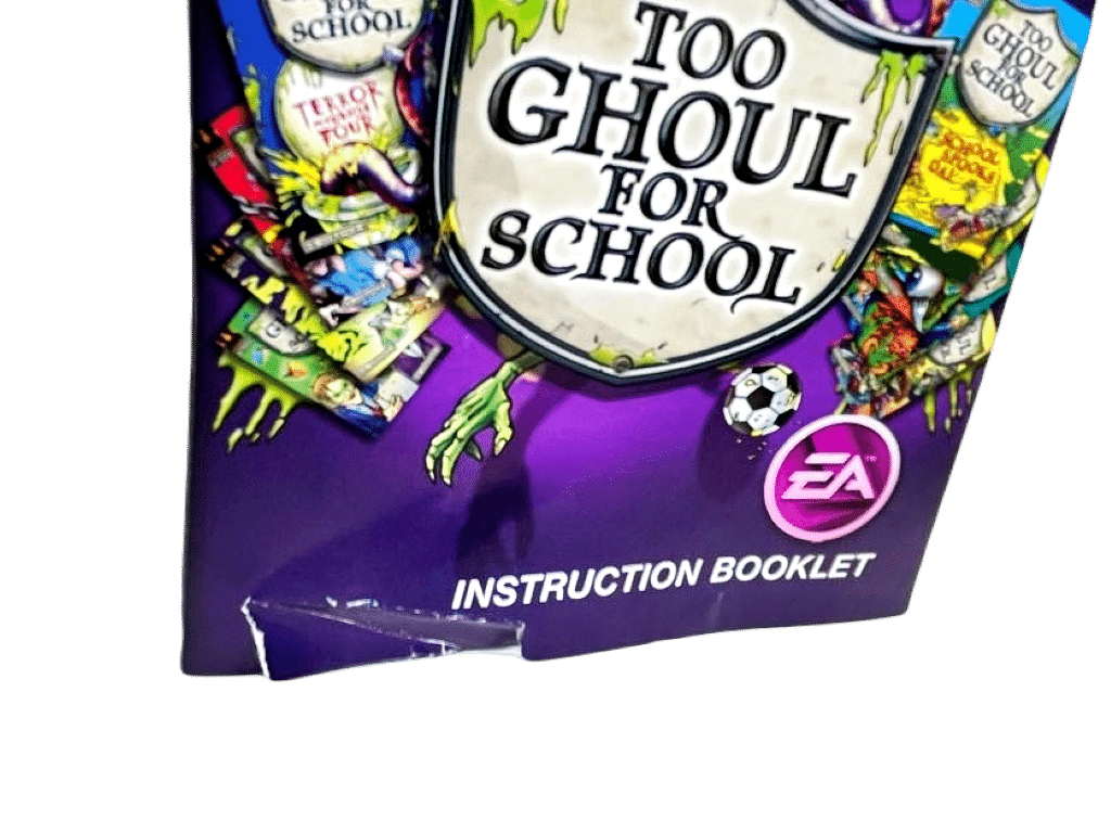 Excellent condition & 100% complete with contents: Too Ghoul for School for Nintendo DS. This preowned game is in superb condition and comes complete with case + cover + manual / booklet + game cartridge. The only imperfection I spotted was on the bottom of the booklet where I saw a tiny paper tear pictured. Aside from this, fantastic.