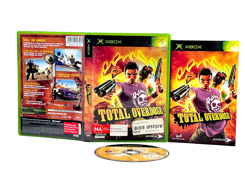 Total Overdose (Xbox) *COMPLETE*. This preowned Original Xbox game comes complete with each of the original case + cover + instruction manual booklet in excellent condition. The game disc is also very good, with some mild markings and faint scratches only. Overall, a nice and complete collector’s item. Refer photographs.