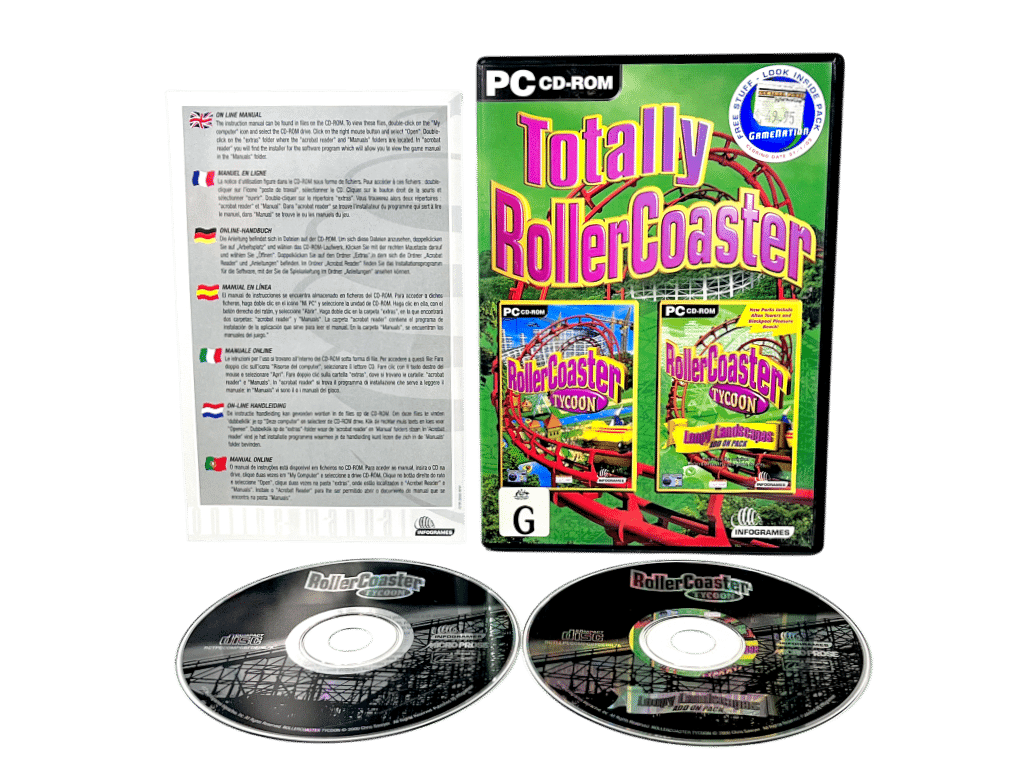 Totally RollerCoaster (PC). This preowned game disc is in excellent condition and includes pictured case + contents. Case has some minor wear and tear. Please NOTE that as a preowned PC game, this game may require a new Steam code or key code purchased online in order to unlock the game. Refer photographs.