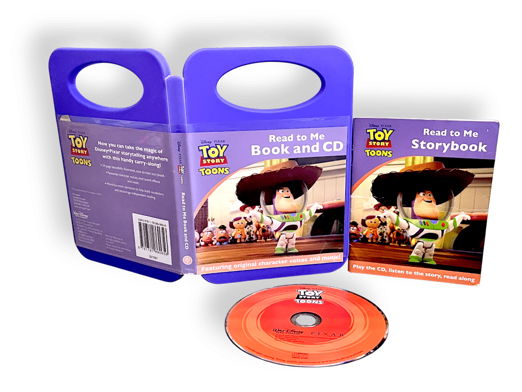 Toy Story Toons Read to Me Book & CD. This pre-owned DVD movie is in good condition and complete with original case, mild markings and faint scratches on disc. But these are purely cosmetic and do not hinder performance or play in the slightest.