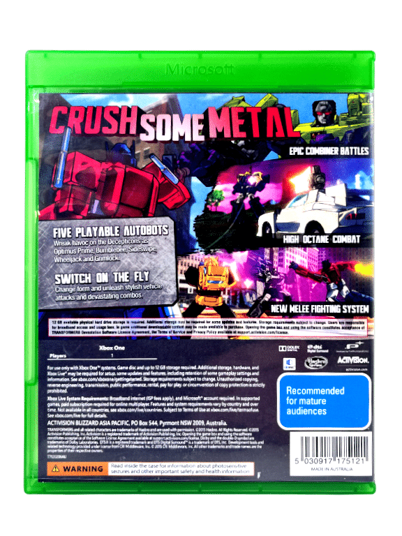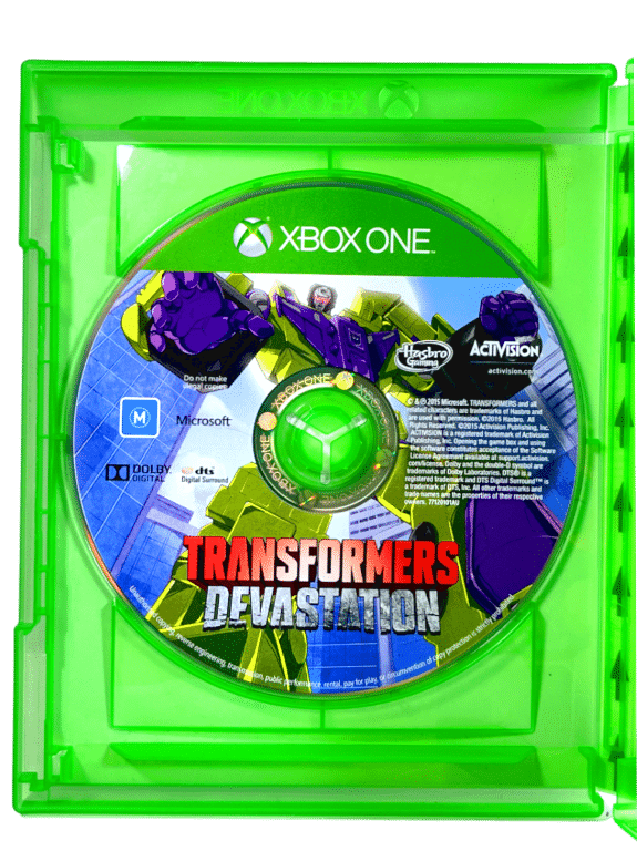 RARE & Collectible Xbox One game in excellent condition & 100% complete with contents: TRANSFORMERS DEVASTATION for XBox One. This preowned game is in superb condition and comes complete with original case, cover, and game disc.