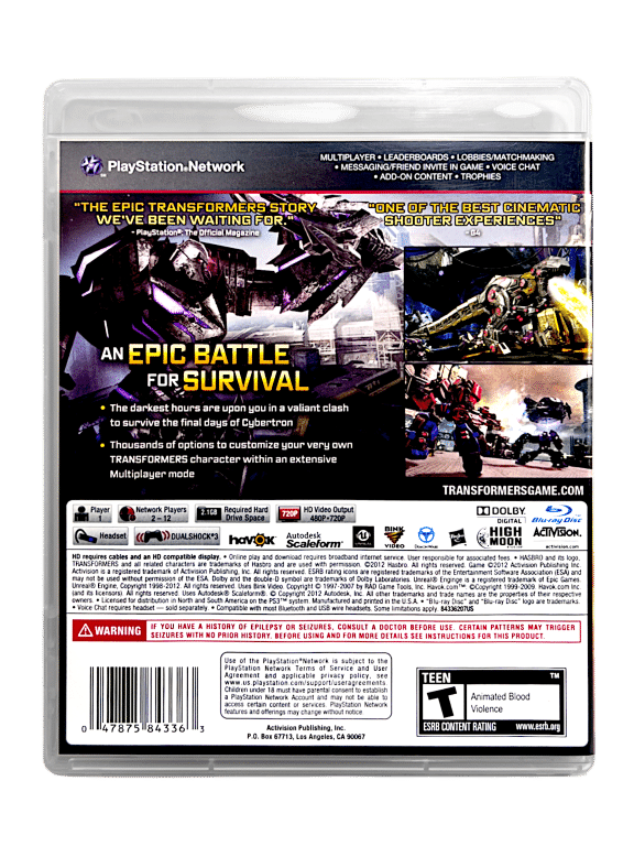 - Apocalyptic Setting: Play as both Autobots and Decepticons in an epic story set amongst the ruins of the Transformers home planet, ravaged from years of war. Experience the never before told final battles that culminate in the legendary exodus from Cybertron.