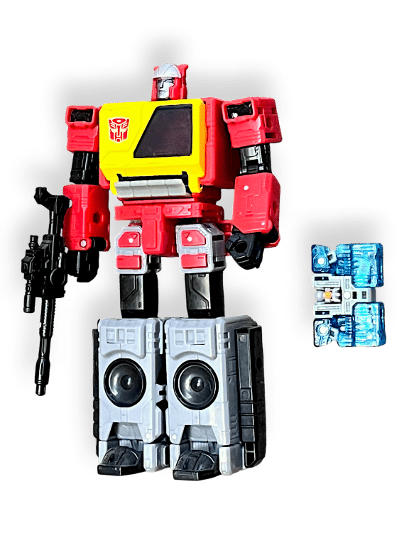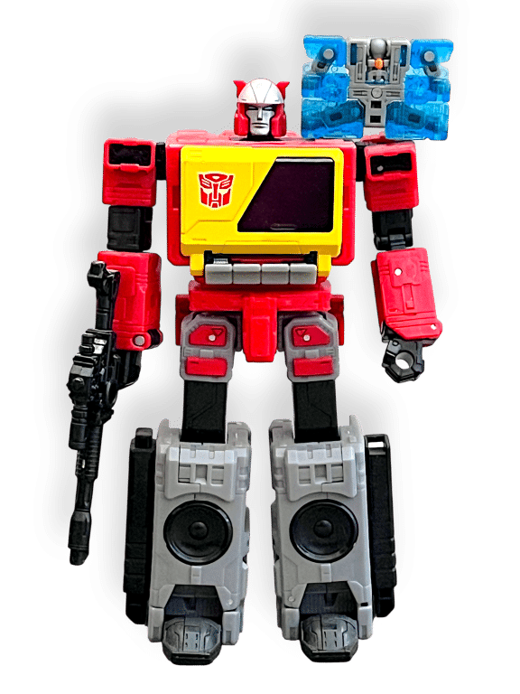 Transformers Legacy Blaster brings the classic Autobot communications officer into the modern Generations line with vibrant colours, solid articulation, and a screen-accurate boombox design. This figure includes Eject, who converts into cassette mode and stores inside Blaster’s chest. A standout release for collectors who appreciate iconic G1 characters updated with modern engineering and display-ready presence.