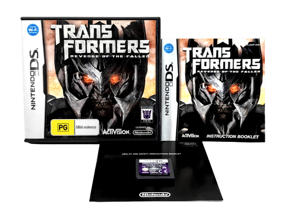 Authentic New Zealand / AUS Edition (with the signature “PG” Classification embedded in the cover art) in excellent condition & 100% complete with contents: TRANSFORMERS REVENGE OF THE FALLEN DECEPTICONS for NINTENDO DS. This preowned Official Nintendo DS game is in very tidy condition and comes complete with case, cover, manual / booklet, Nintendo leaflet, and game cartridge. A tidy and complete collector’s item. Refer photographs.