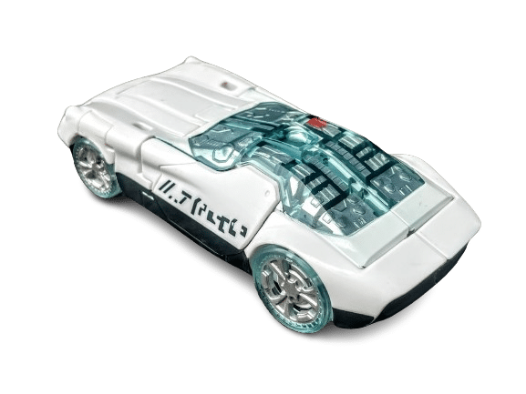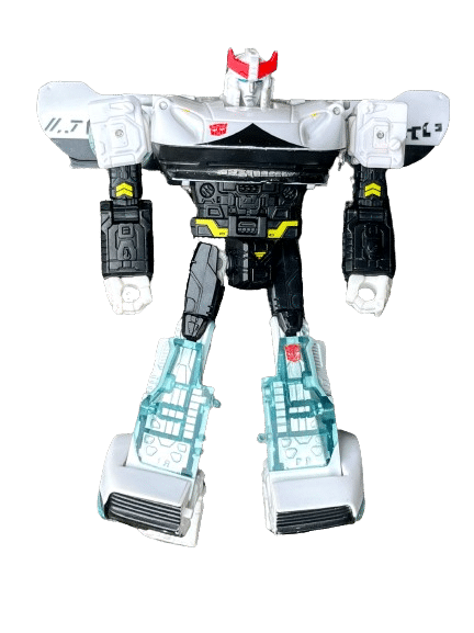 The Deluxe Class WFC-S23 Prowl figure comes with a converting W-45 Acid Pellet Strikeblaster weapon accessory with axe and blaster modes. Figure features multiple C.O.M.B.A.T. System weapon ports to attach weapons, enabling custom configurations in bot and vehicle modes.
