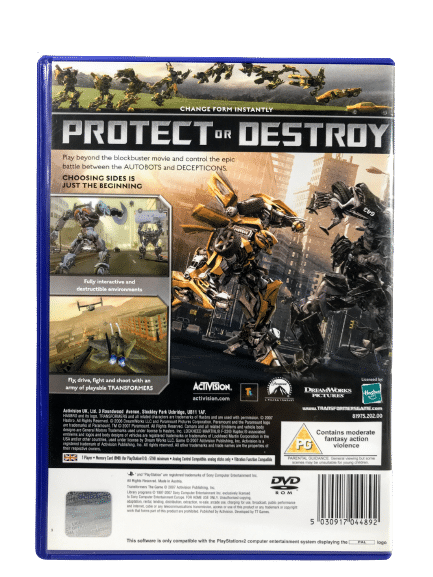 Good condition: TRANSFORMERS THE GAME for SONY PlayStation 2 / PS2. This preowned game is in good condition and comes complete with, cover and game disc.
