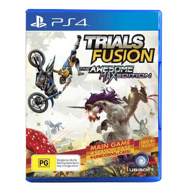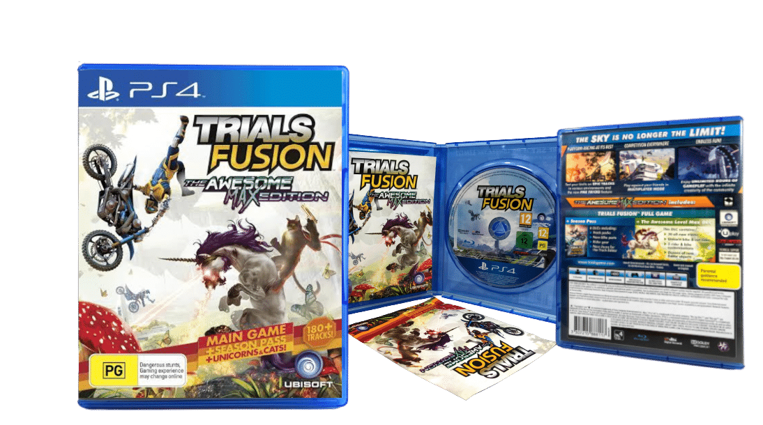 Excellent condition & 100% complete with manual: TRIALS FUSION Awesome Max Edition for SONY PlayStation 4 / PS4. This preowned game is in superb condition and comes complete with case, cover, manual / booklet, carded insert, and game disc. Note that any single use paper voucher codes have expired, but these were promotional downloadable “Awesome Max” bonuses only are not required for gameplay or completion. The FULL Trials Fusion game is contained on the game disc.