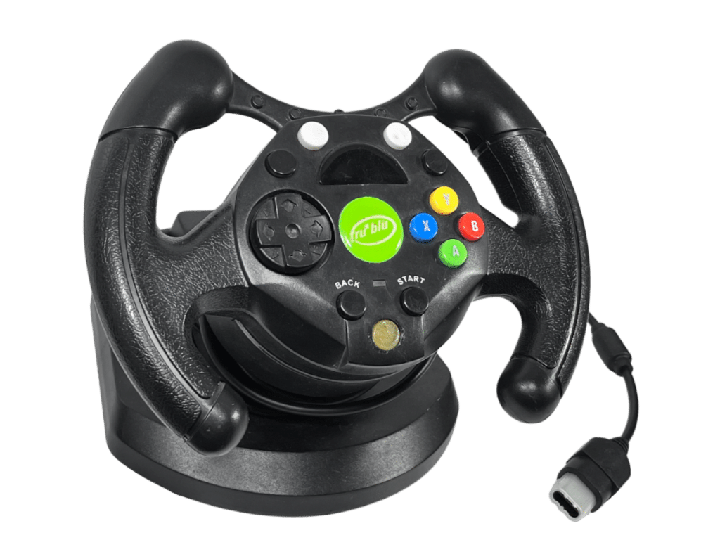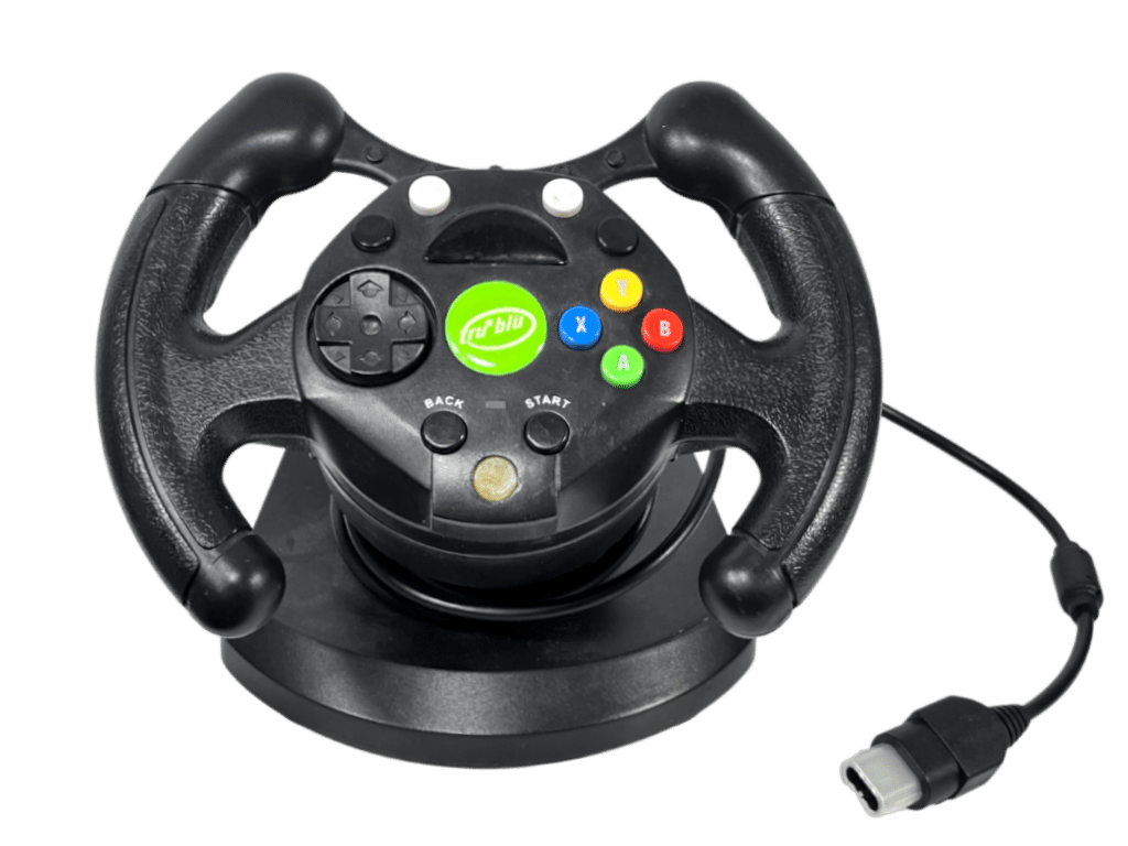 Wired Steering Wheel for Original Xbox. This preowned wired TruBlu Racing Wheel is in good condition. For use with Original Xbox games such as Forza Motorsport (games sold separately).