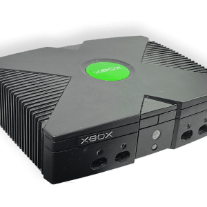 Steering wheel-style controller with integrated buttons for original Xbox. Features tactile grips, pressure-sensitive buttons, and vibration feedback. Condition: Good – minor wear, fully functional. Connector: Xbox proprietary plug. Ideal for retro gamers and racing enthusiasts.