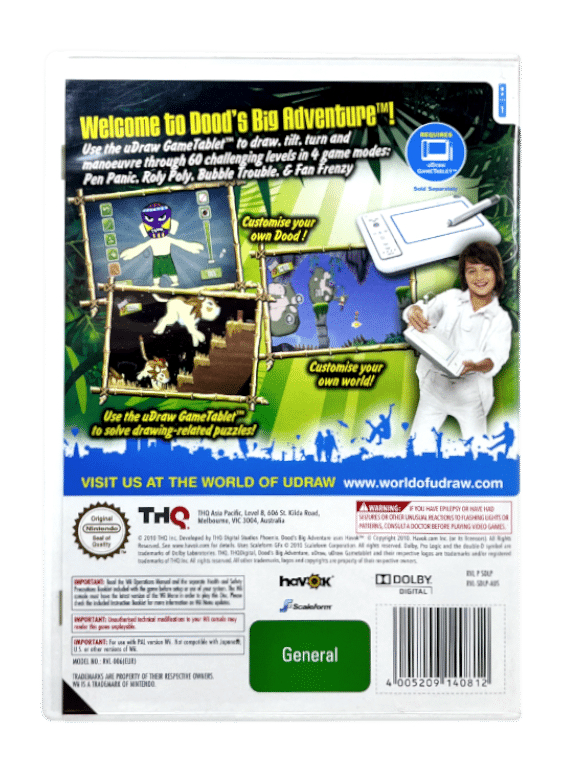 Excellent condition & 100% complete with contents: Udraw: Dood’s Big Adventure for Nintendo Wii. This preowned game is in superb condition and includes case + cover + manual / booklet + game disc.