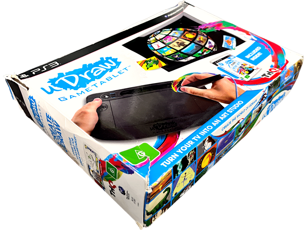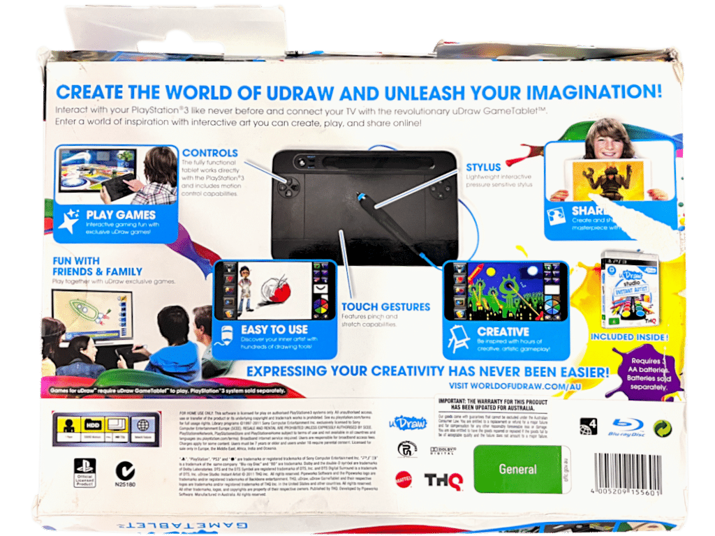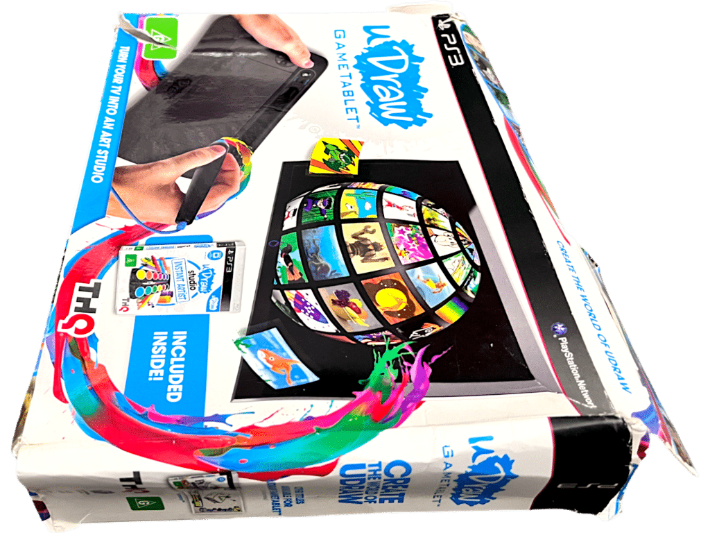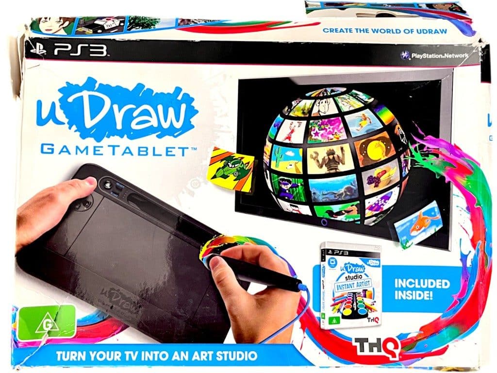 UDraw Game Tablet + Game (SONY ) *MINT IN BOX*. This preowned MATCHING PLAYING BUNDLE is in As New and comes complete with Official Udraw Tablet inside the pictured box with game. Appears to have never been used! Game and tablet like new. Box has pictured cardboard wear from storage, but the internal contents are as new.