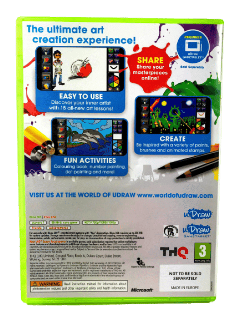 Fair Condition & Complete with Manual: UDraw Studio Instant Artist for Xbox 360. This preowned games come complete with case, cover, manuals / booklet, and game discs. No U draw accessories included in listing.
