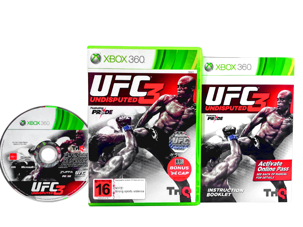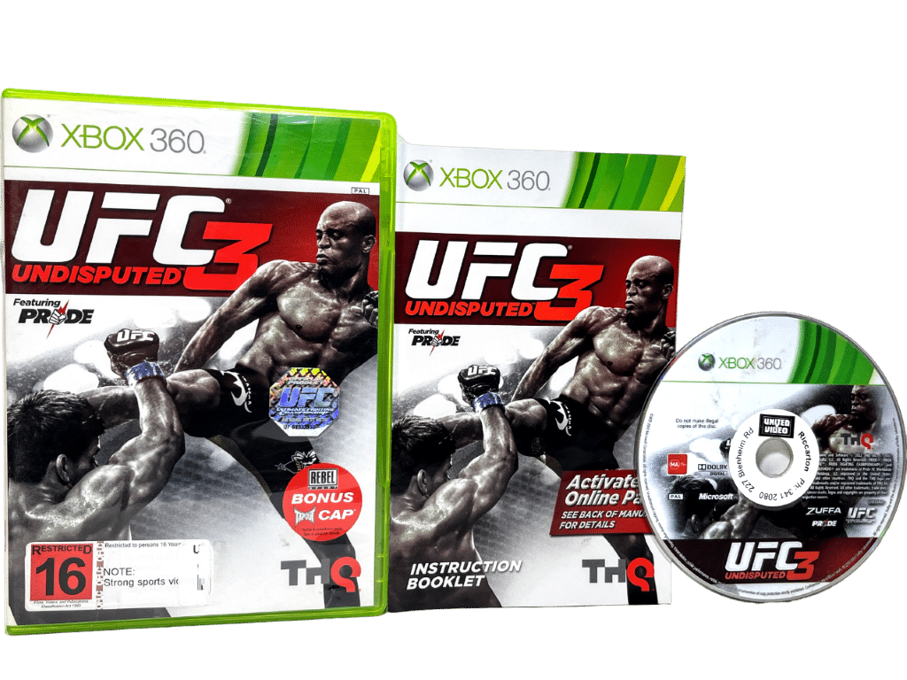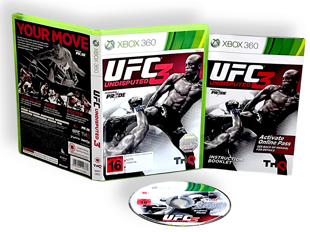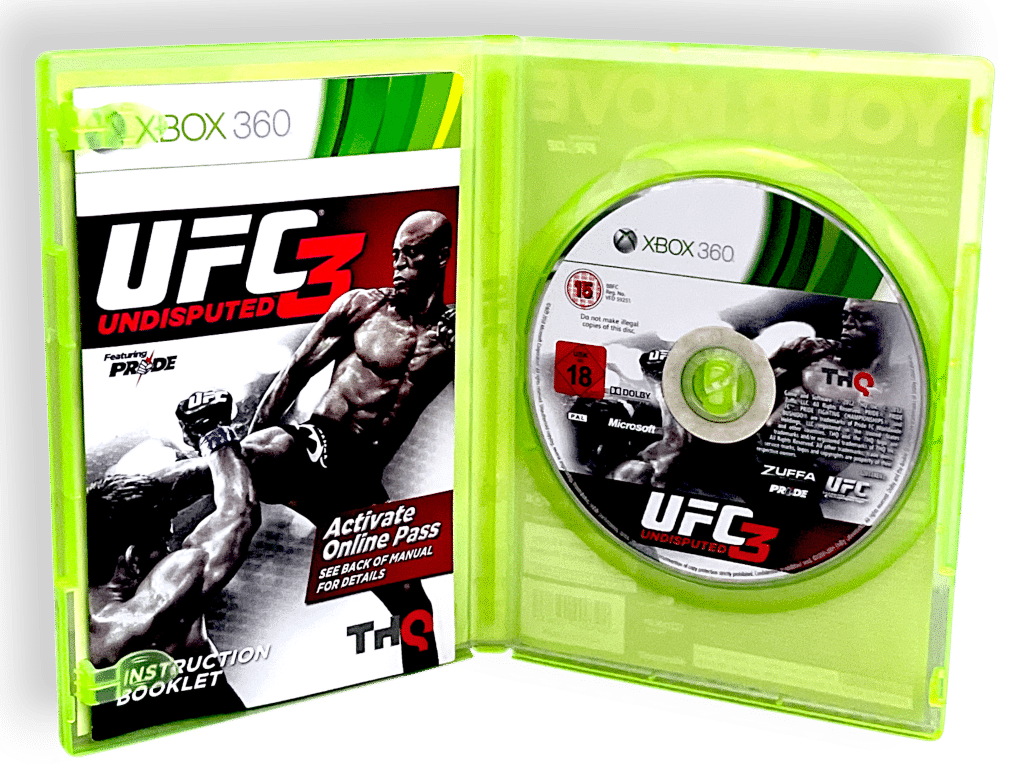 RARE Xbox 360 Fighting Game in MINT Condition & 100% complete with contents: UFC Undisputed 3 for XBox 360. This preowned game is in pristine condition and comes complete with case + cover + instruction manual / booklet + game disc. A very tardy and complete collector’s item.