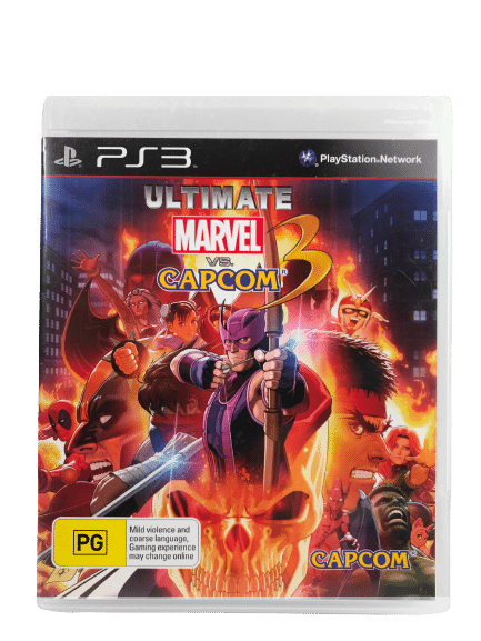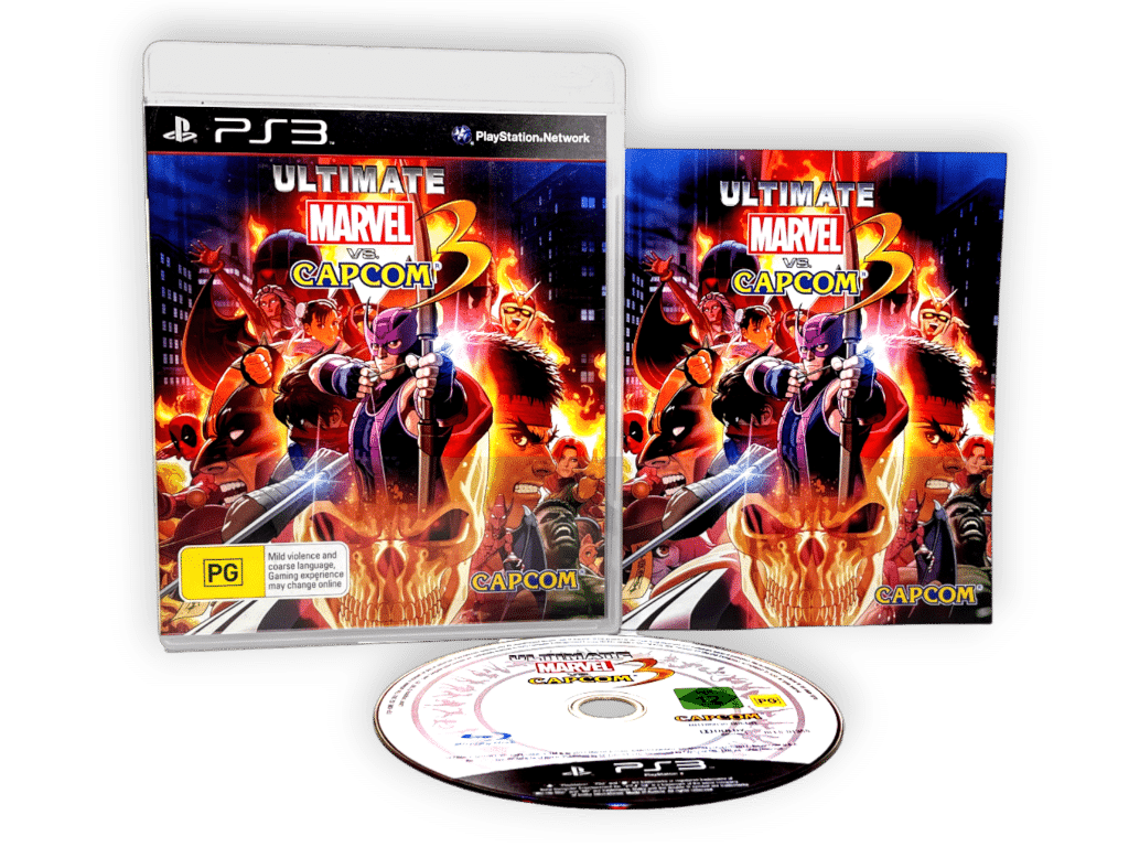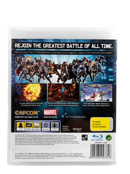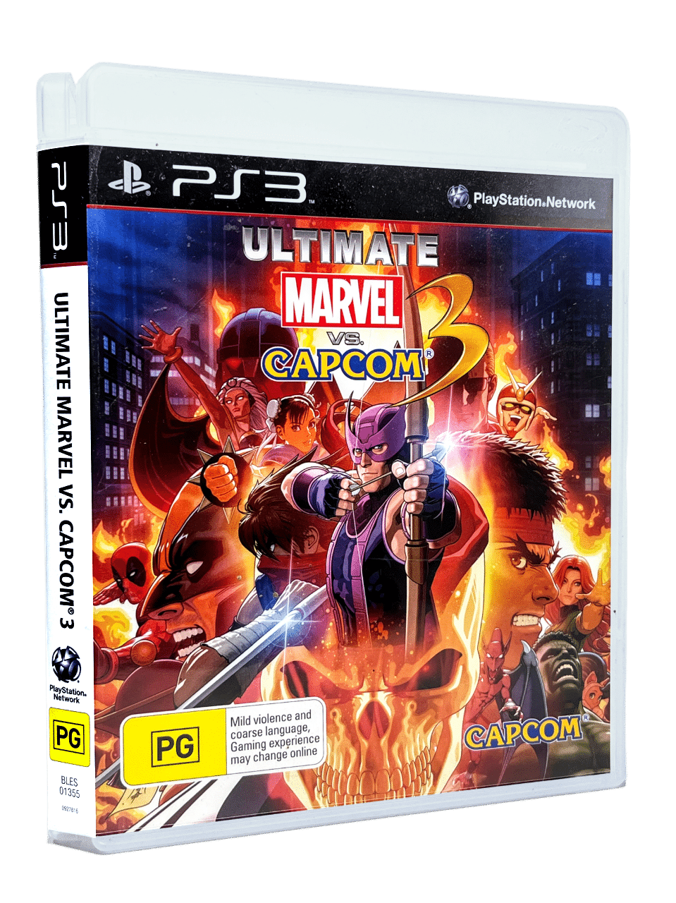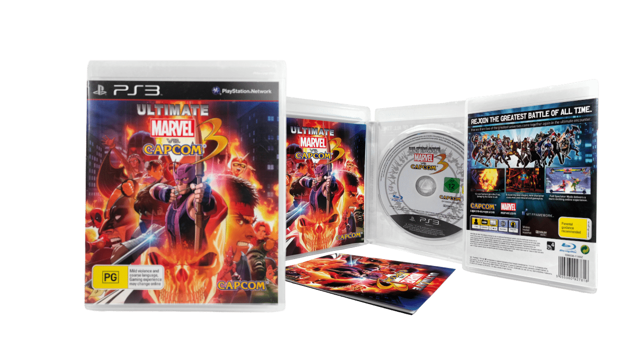 Authentic New Zealand / AUS Edition in mint condition & 100% complete with contents: Ultimate Marvel vs. Capcom 3 / ULTIMATE MARVEL VS CAPCOM 3 / Ultimate Marvel Vs Capcom III for SONY PlayStation 3 / PS3. This preowned game is in pristine condition – a very tidy and complete collector’s item – with case, cover, manual / booklet and game disc. This is the genuine NZ print with the signature “PG” Classification embedded in the cover art and on the game disc. Add this to your collection today.
